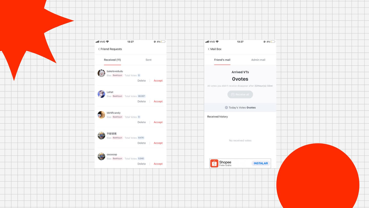Em ‘Friend requests’ você consegue aceitar quem te mandou solicitação de amizade. Em ‘Mail Box’ você aceita os votos que seus amigos te mandam.